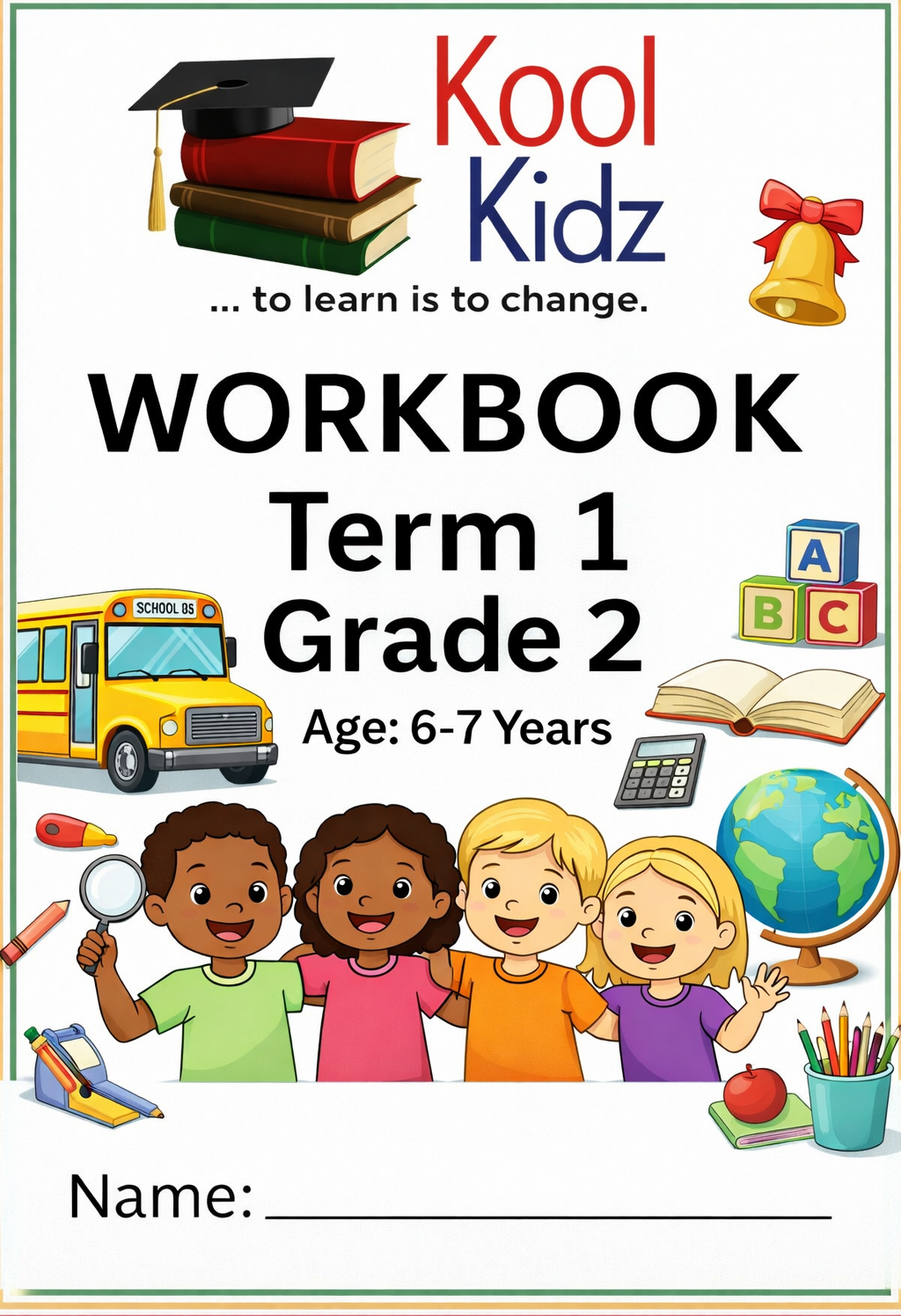 The Kool Kidz Grade 2 Term 1 Workbook is designed to help learners aged 6–7 years strengthen and expand the skills developed during their early primary years. Through structured, engaging activities, the workbook supports children as they grow in confidence and independence while building essential academic foundations.